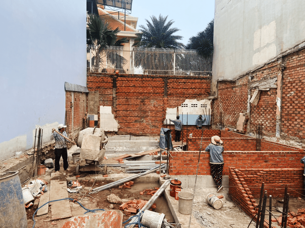 Hình ảnh công nhân đang thi công tại công trình.