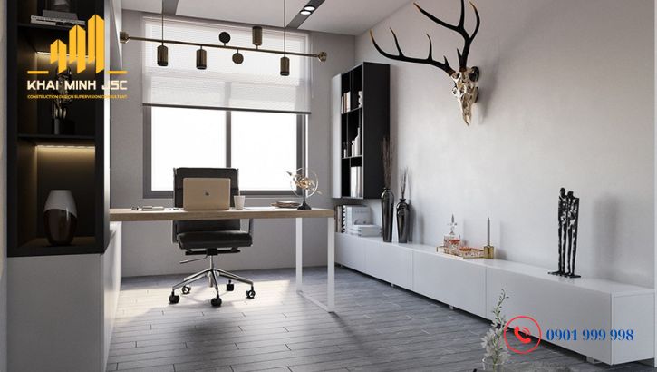 Trong một vài công trình nhà ở sẽ có thêm phòng làm việc riêng biệt để gia chủ có thể tập trung phát huy hết khả năng. Công ty thiết kế nhà phố cần bố trí nội thất hợp lý đảm bảo điều kiện tốt nhất để làm việc hiệu quả, tăng cường sự tập trung.